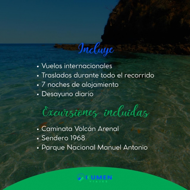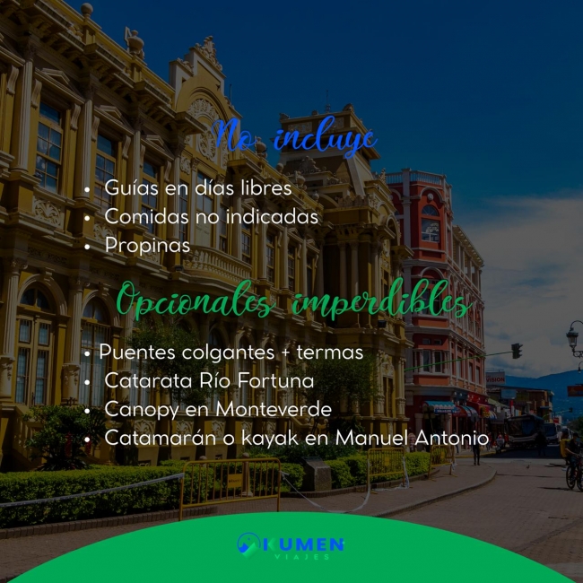 🏨 1 noche en San José + 2 noches en Arenal + 1 noche en Monteverde + 2 noches en Manuel Antonio con desayuno diario