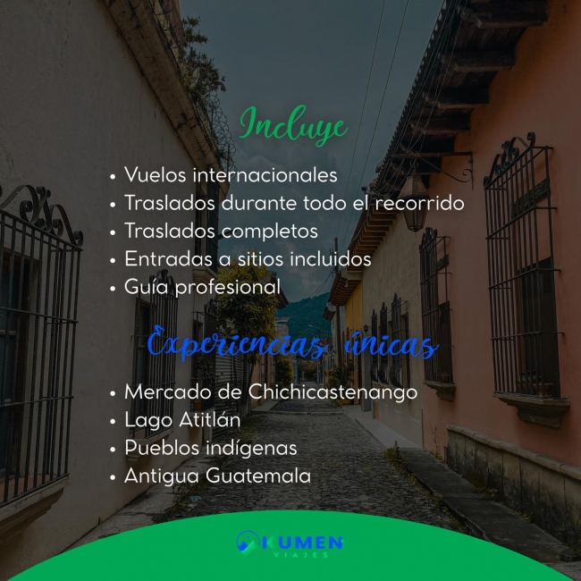 🏨 2 noches en Guatemala + 1 noche en Lago Atitlan + 4 noches en La Antigua con desayuno diario
